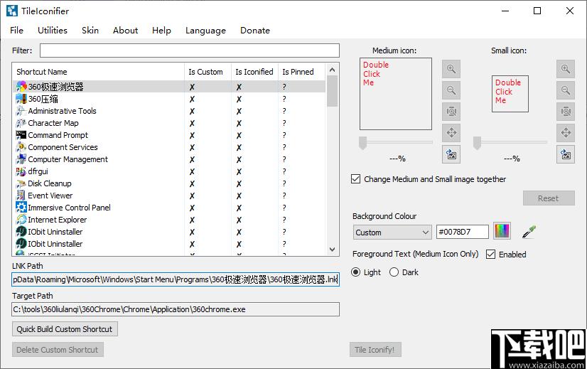 1、允许您为应用程序创建中小型块,并在可能时修改其当前快捷方式。